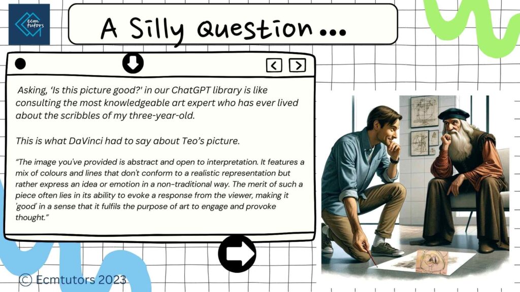 Impressed by their critical thinking, I asked the students to share the ‘Theory of their Knowledge.’ Excitedly, they described how they’d tested AI. Another teacher had given them an example of a terrible IB extended essay question, and they’d cynically copied it into ChatGPT and asked, ‘Is this a good essay question?’